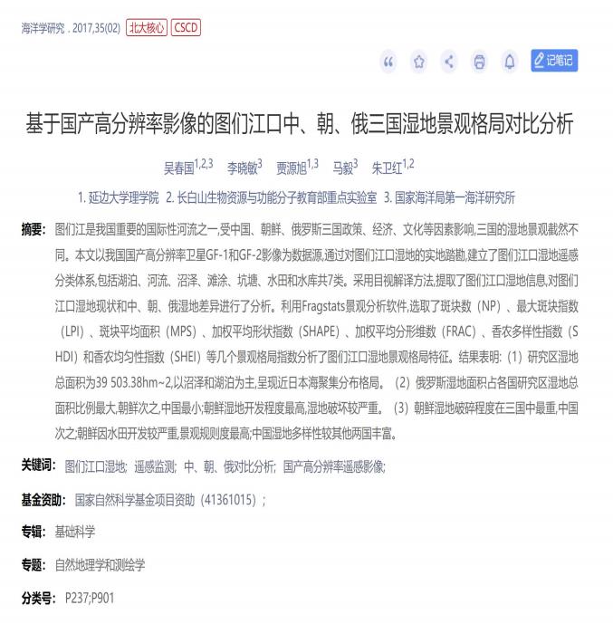 36.《基于国产高分辨率影像的图们江口中、朝、俄三国湿地景观格局对比分