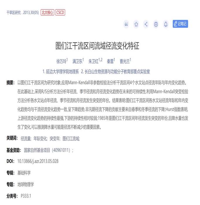 《图们江干流区间流域径流变化特征》