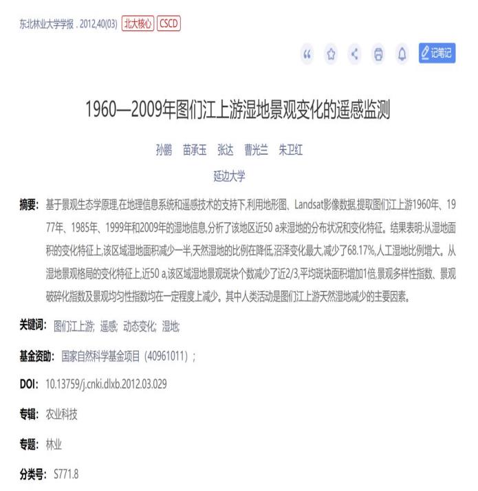 1960-2009 年图们江上游湿地景观变化的遥感监测》