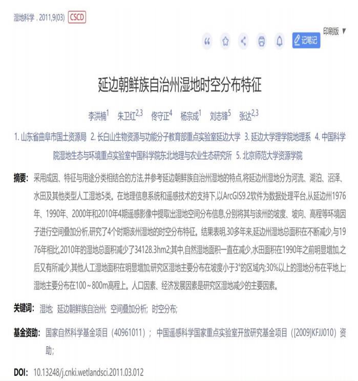 50.《延边朝鲜族自治州湿地时空分布特征》