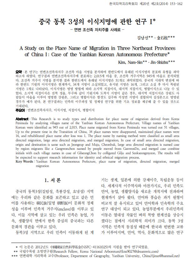 74.《中国东北三省移植地名研究(1)-以延边朝鲜族自治州为例》