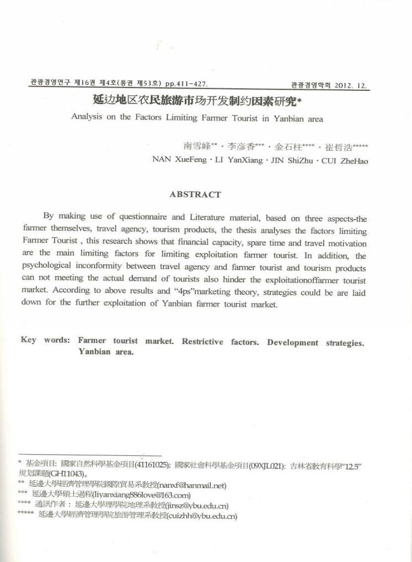 72.《延边地区农民旅游市场开发制约因素研究》