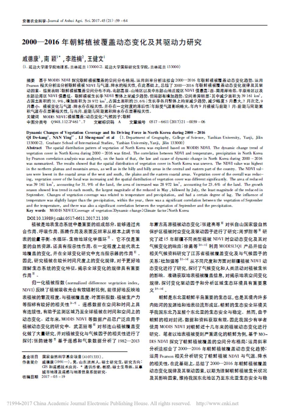 55.《2000-2016年朝鲜植被覆盖动态变化及其驱动力研究》