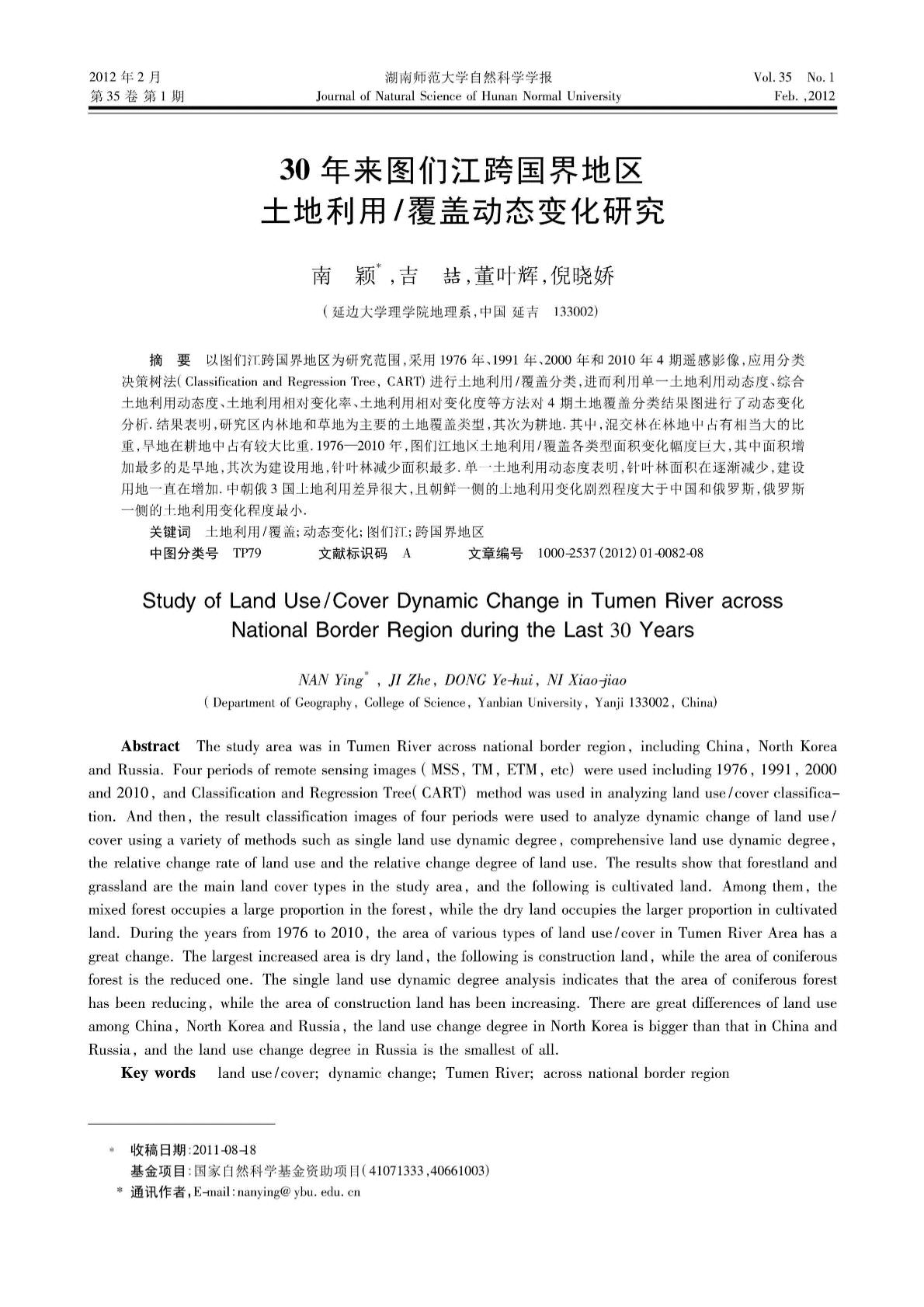 52.《30多年来图们江跨国界地区土地利用/覆盖动态变化研究》