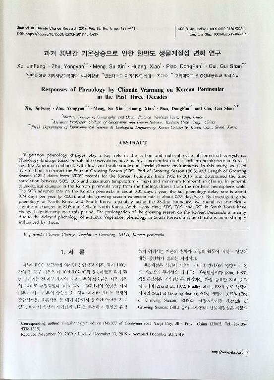 28.《Responses of Phenology by Climate Warming on Korean Peninsular in the Past Three Decades》